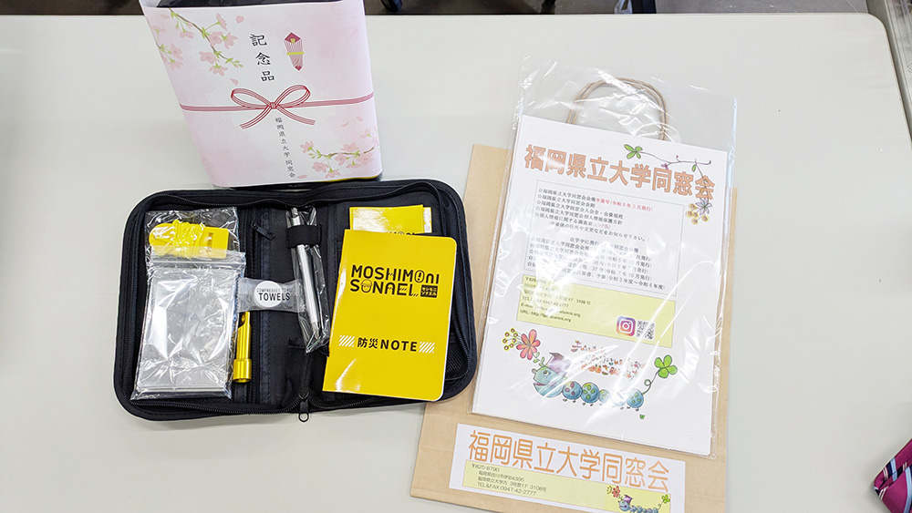 同窓会入会金納入者に「もしもに備える防災ポーチ9点セット」を記念品として贈呈しました。